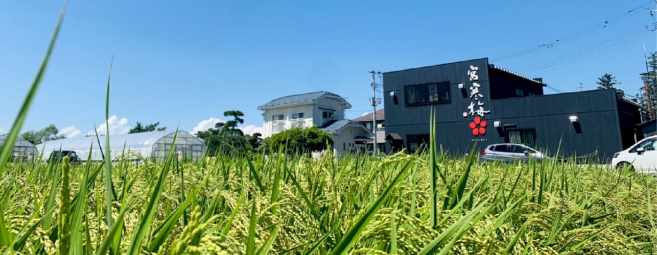 寒梅酒造では酒づくりは米づくりからと、およそ百年前の創業時より伝えられてきました。稲の種もみを土に播きつけ、いい苗床を養うことから。米を知り、そうして酒を知るとも。今も酒蔵の前には、4種類の酒米を育む先祖伝来の田んぼが横たわり、秋も暮れを迎える頃、ゆれる金の稲穂が収穫の時期を伝えます。寒梅酒造:http://miyakanbai.com/